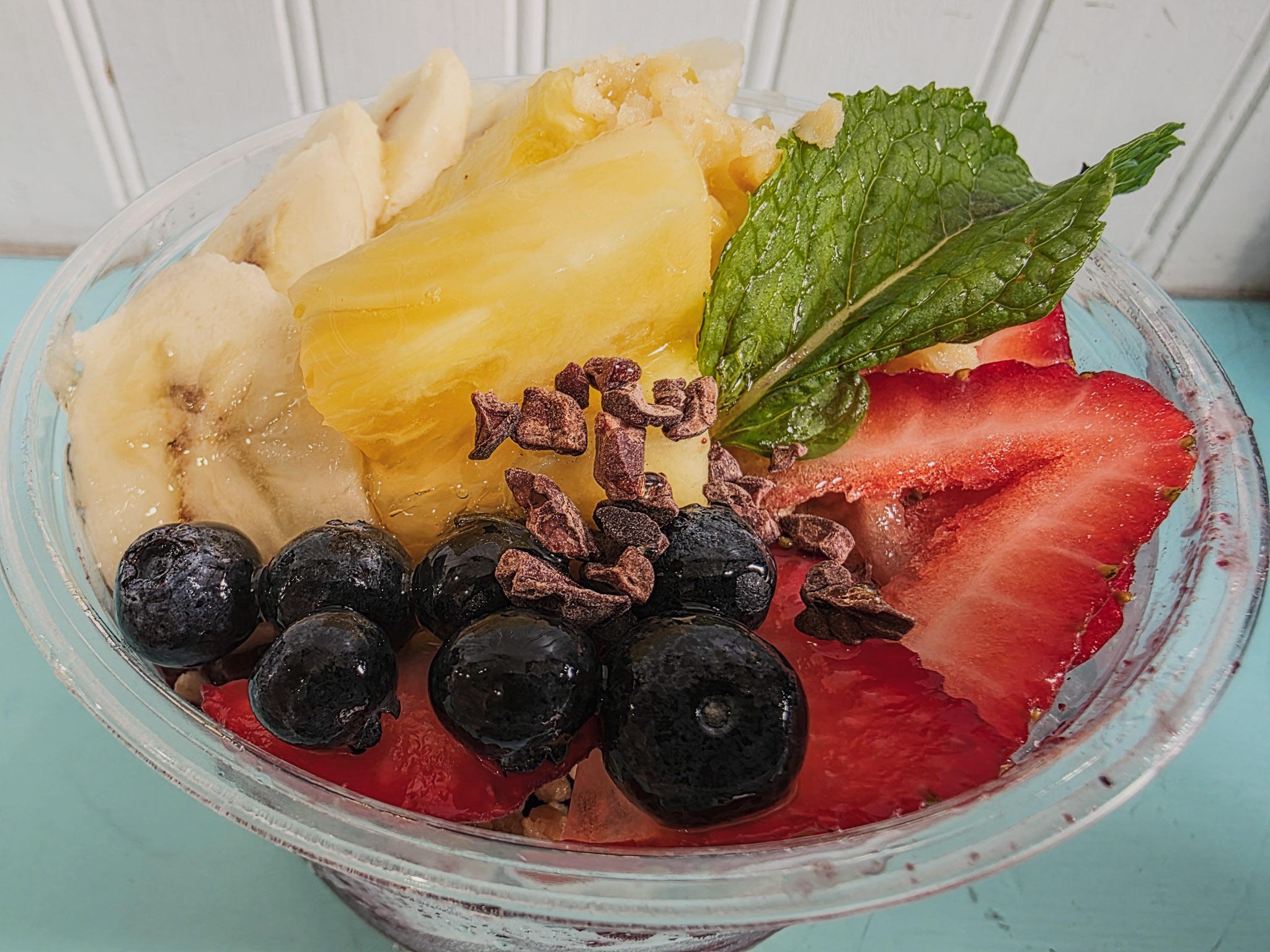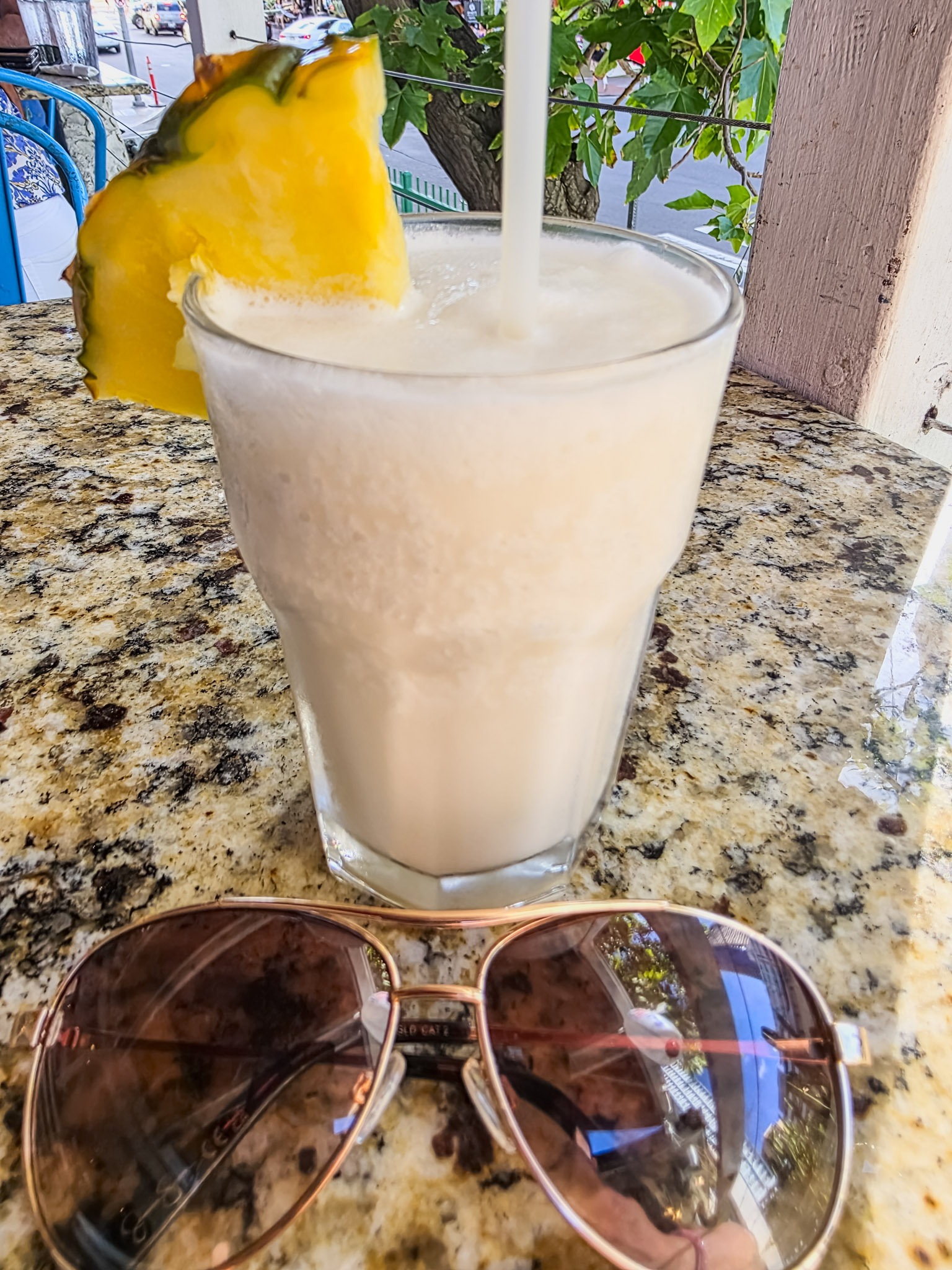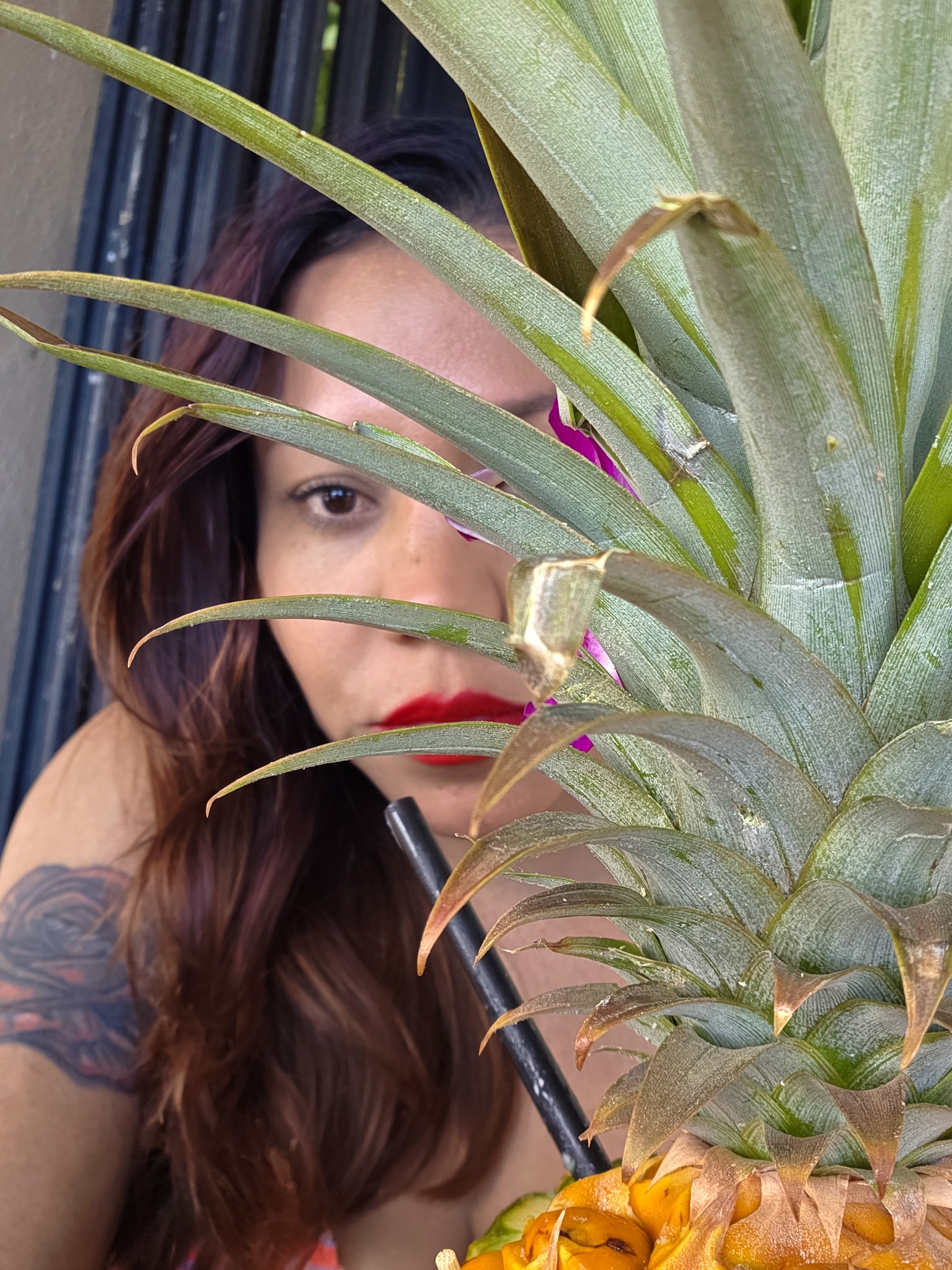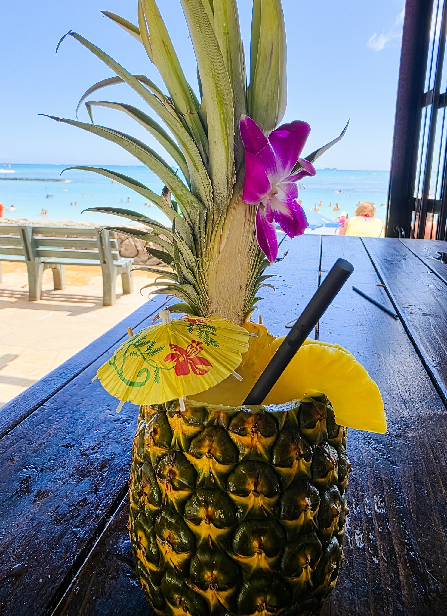 I sipped on a delicious pineapple filled with juice and alcohol.